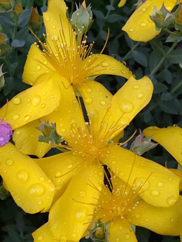 庭のオトギリソウも咲き始め見頃になりました。朝の雨上り撮影