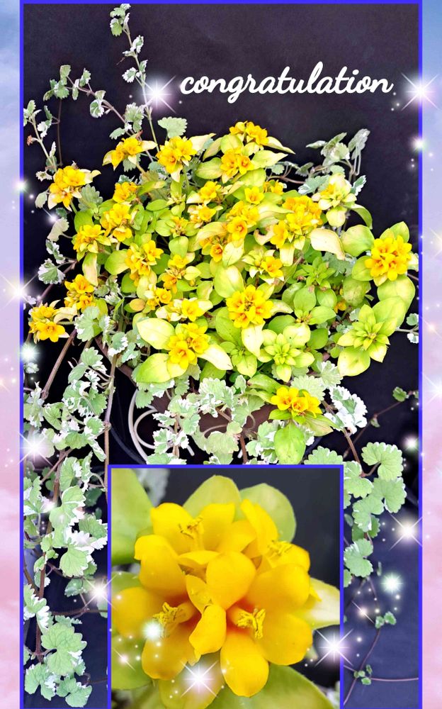 このリシマキアとグレコマさん、数年前の苗から毎年「挿し芽」で育てたものです🎵