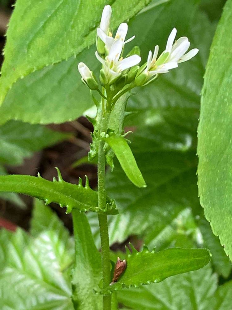 ◾️ヤマハタザオの葉は茎を抱く。高さは35〜80㎝。山野の草地や林縁に咲く