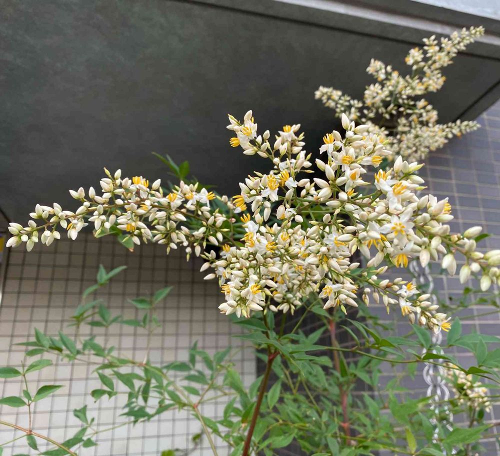 昨日の通り道...南天の白い花。。。