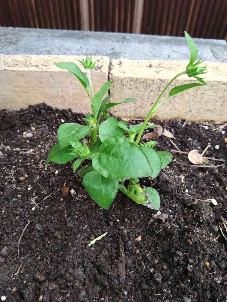 やっと1000輪咲きヒマワリの苗を植えた♥️既に蕾がいくつか付いてるから、そのうち咲くかな☺️