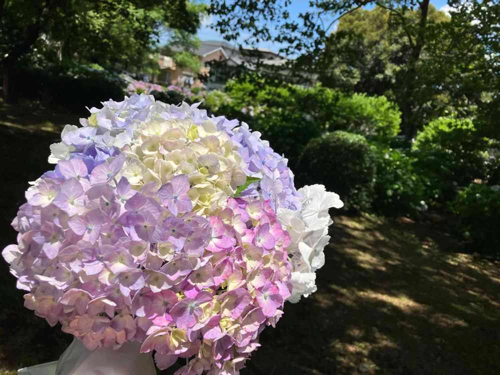 今日たまたま行ったら紫陽花の摘み取りとブーケ作り、やってたよ🥰