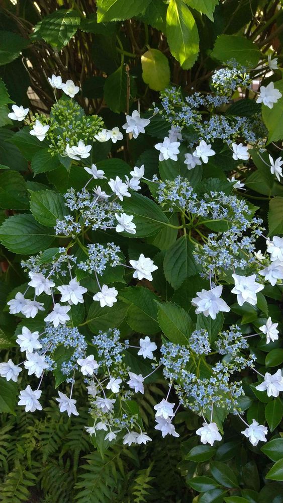 我が家から義母の庭に挿し木でとても大きくなった紫陽花、隅田の花火。