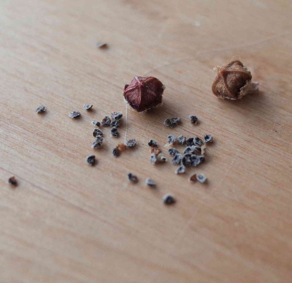ついに採取できました。カラカラになった種袋を水に浸けてふやかして剥いて、乾燥させてこんな感じです。