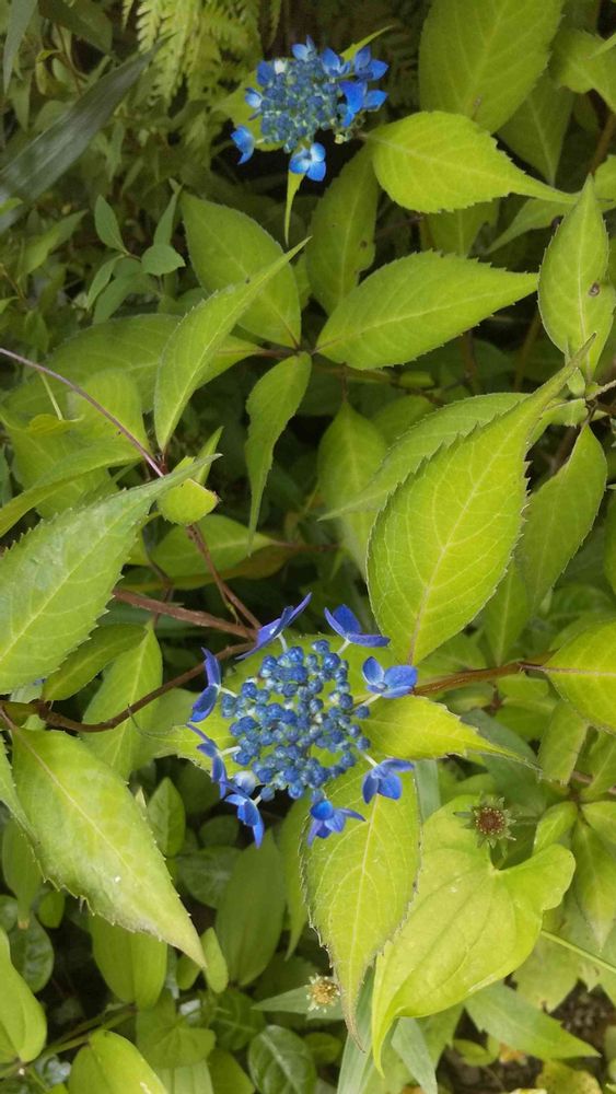 ヤマアジサイ`藍姫´の花が青く色づきました