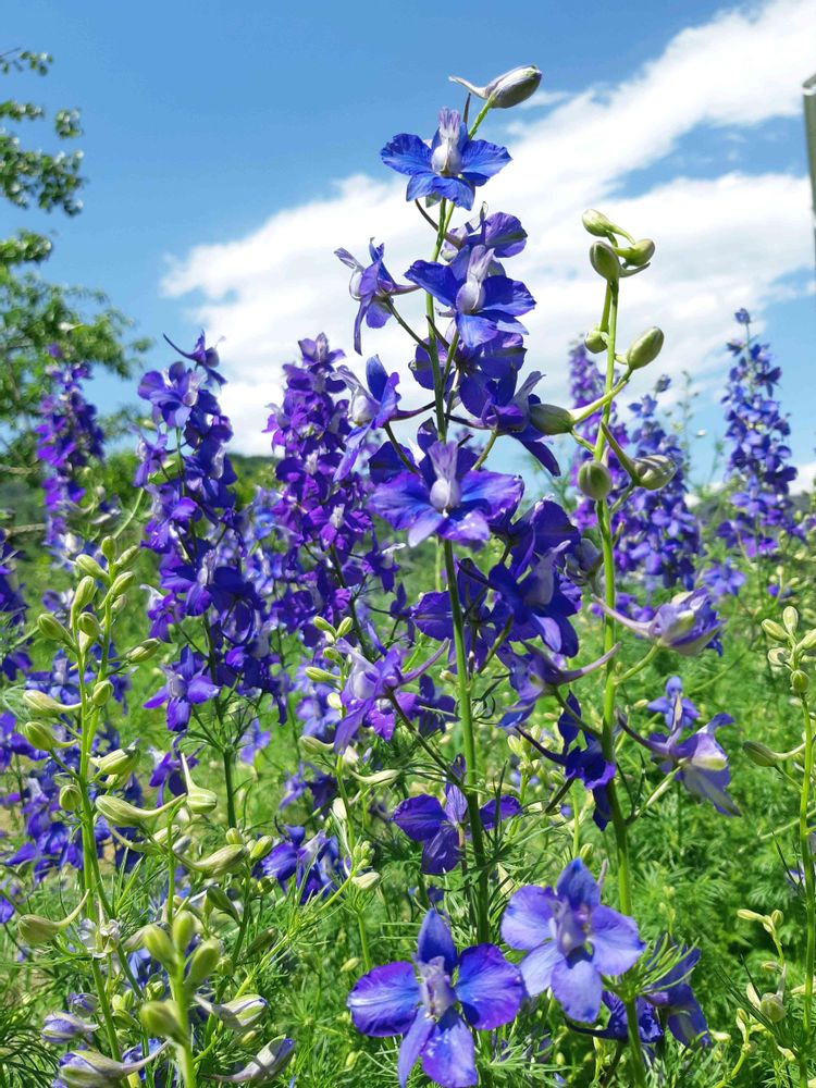 去年、花後に抜いた株を仮置きしていた場所が、こぼれ種でチドリソウの群生地になりました💠💠💠