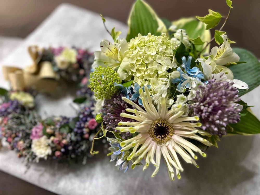 ホッとした勢いで小さなアレンジとリース並べたのもついでに3連投ですみません😅