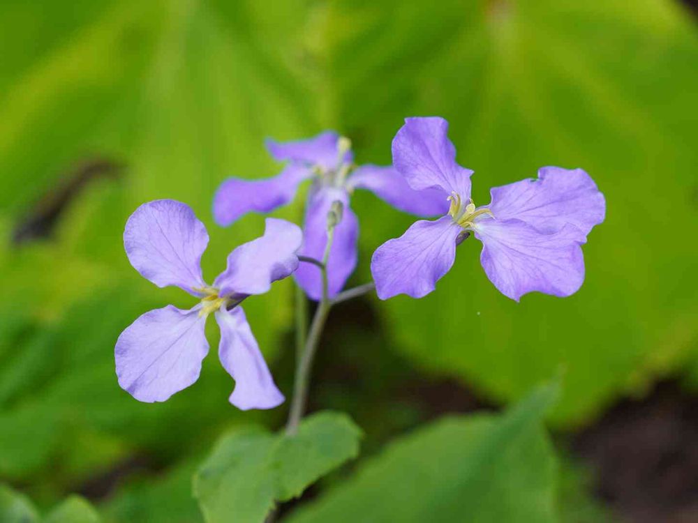 中国原産の越年草でオオアラセイトウが正式名称、こぼれ種なのかシュウカイドウ群生地にポツポツ咲いています😊