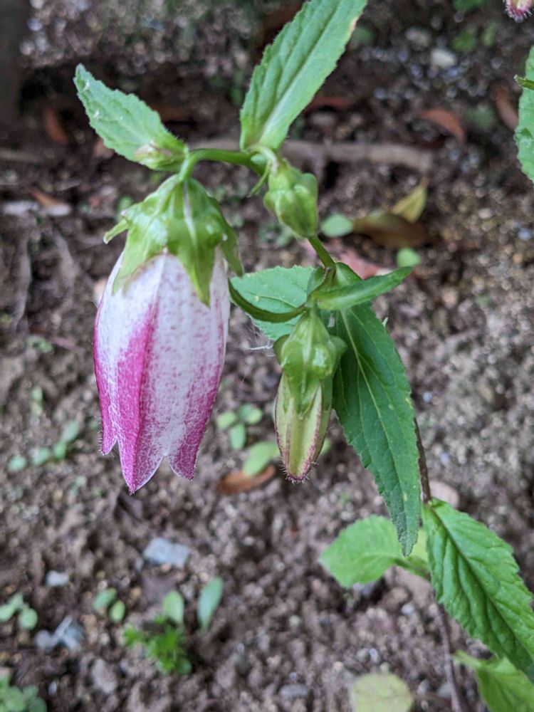 植えた覚えないし、雑草みたいだけど、葉っぱが大きいので放置してたら、ホタルブクロが咲き始めてました✨