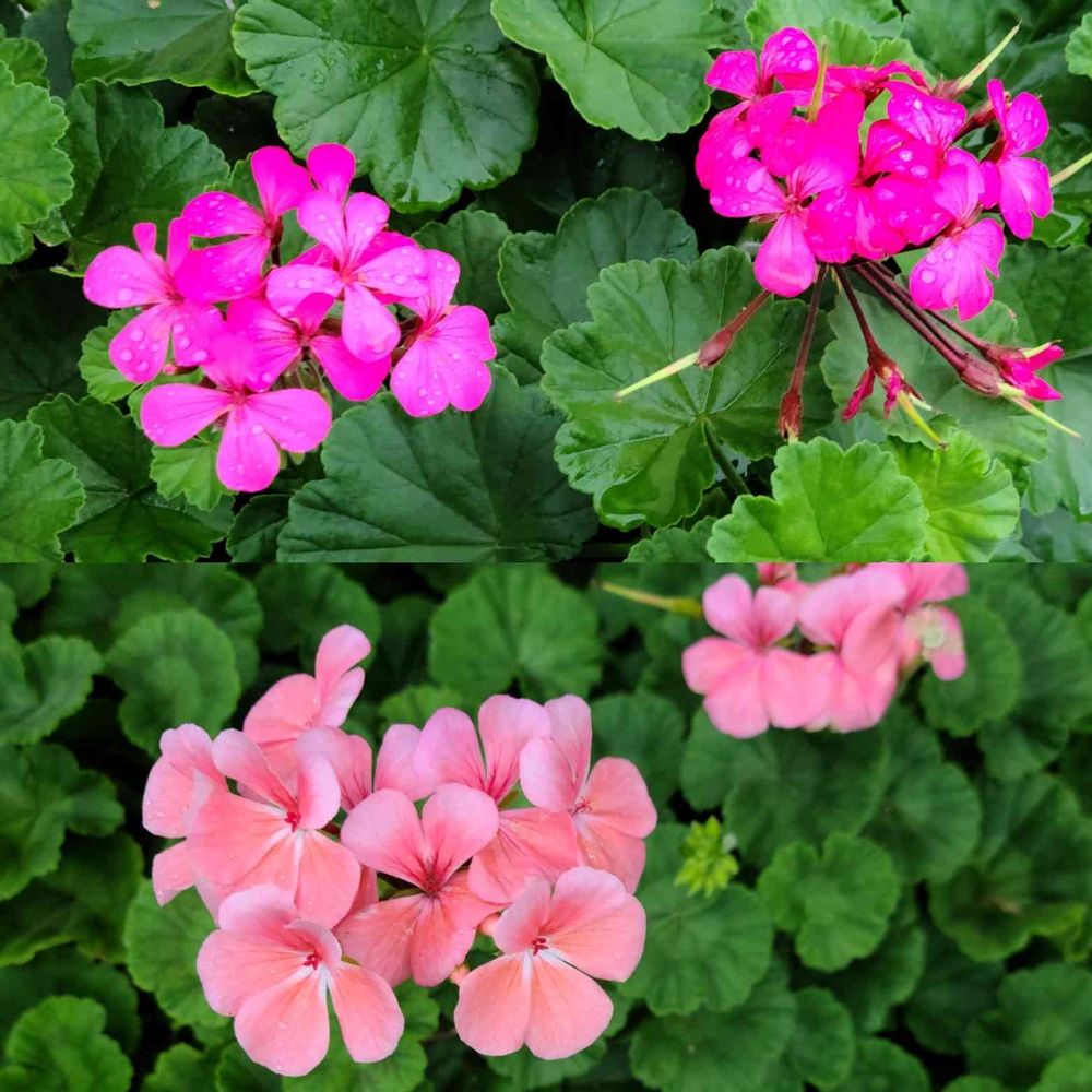 濃いピンクとサーモンピンク2種のゼラニュームのお花、可愛いですね🎀