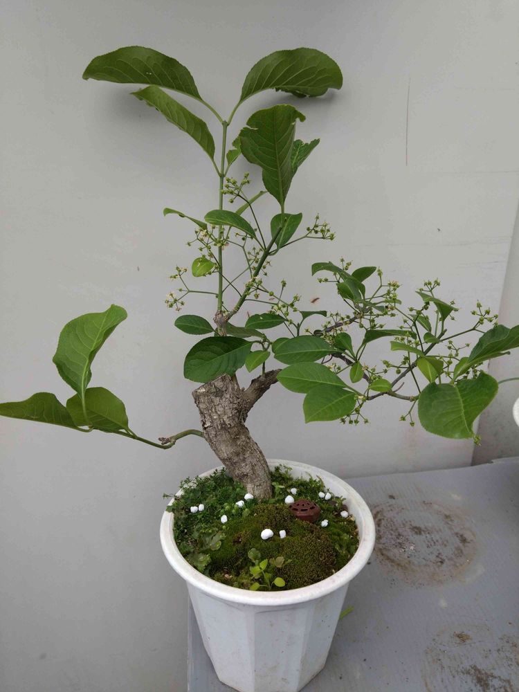 この木の周りには、同属性の白マユミ、コマユミ、ニシキギが数鉢。狭い庭にはツリバナがあり、ほぼ同時に開花します。