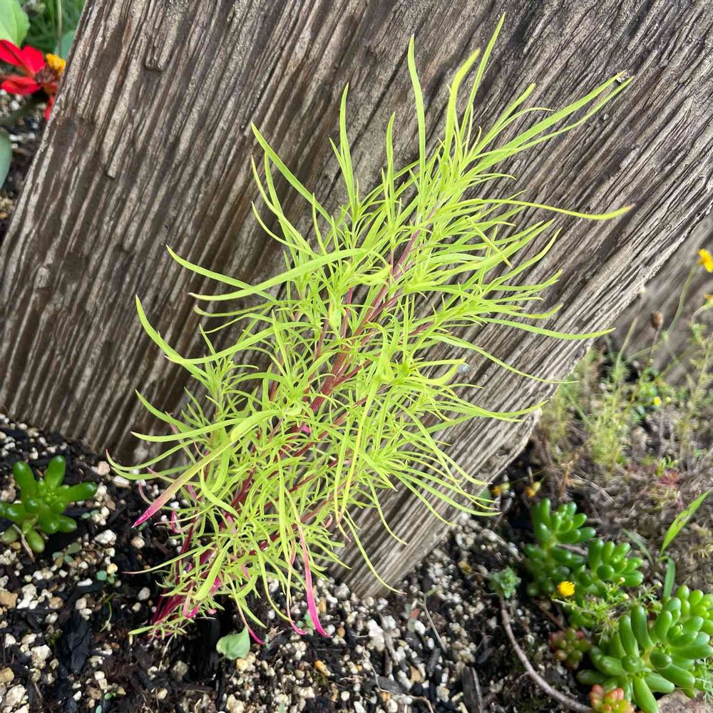 去年秋に購入、1年草と聞いていたので、生えて来ないものと思っていました。こぼれ種から発芽したようで、他の鉢から何本も生えています😊