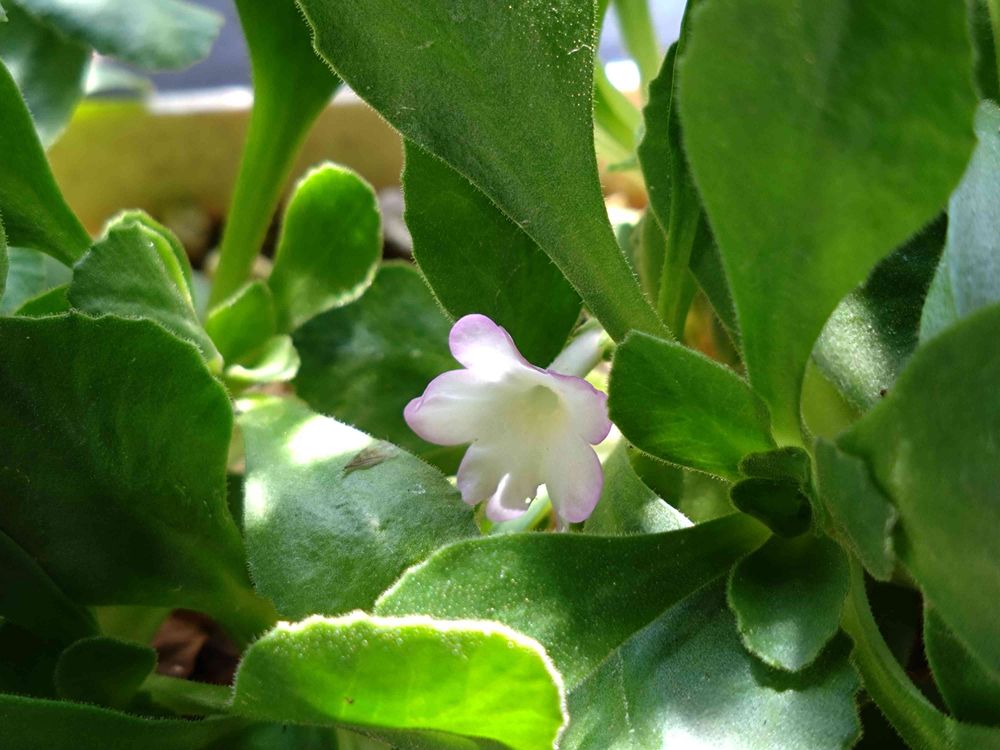 山野草棚の下の方で咲いてるプリムラ、名札が無くなっていて