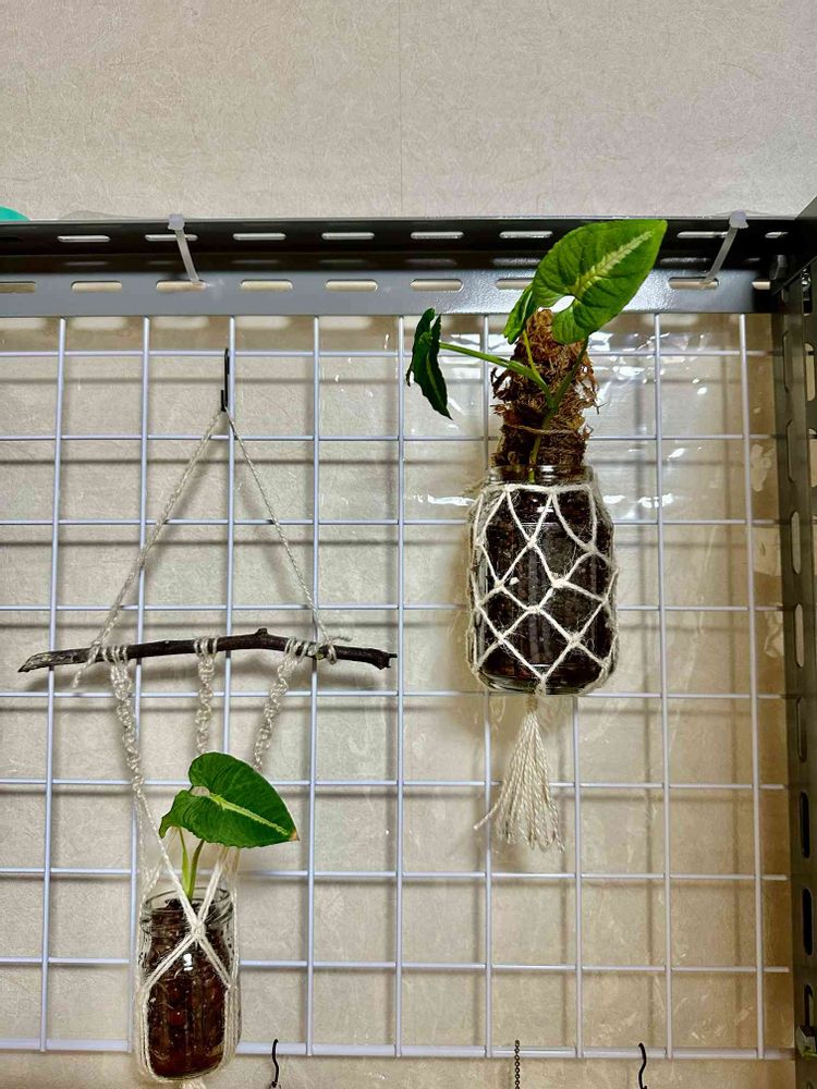 小さい方の瓶に窮屈そうに入っていたシンゴニウム ブラックベルベットさん。コーヒーの瓶にモスタワーもどきをパワーアップしてお引越し。
