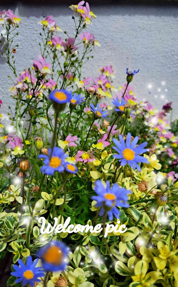 玄関,斑入りブルーデージー,PWネメシアロマンスハニーピーチの投稿画像