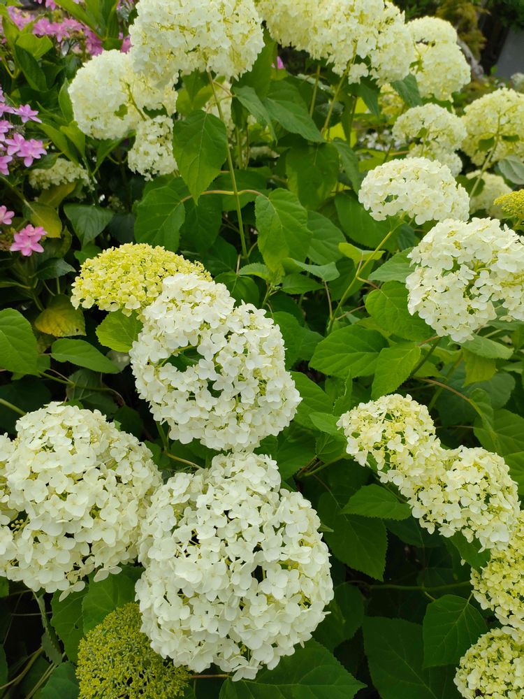 アナベルが涼しげに咲いています🤍💚🤍💚