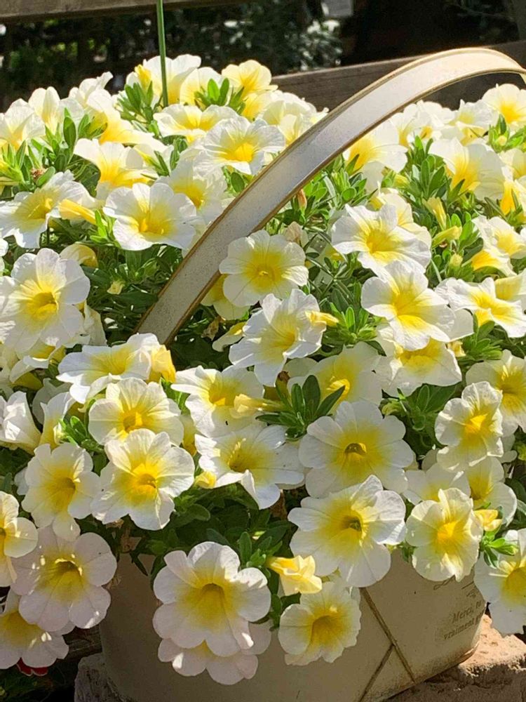 黄色と白のペチュニアさんは明るくてさわやかで若さいっぱいな感じが好きです🫶💛🤍💛🤍💛元気モリモリ💛🤍💛🤍