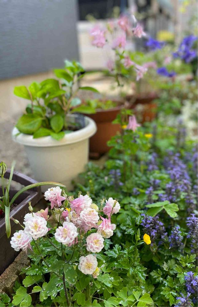 小さな庭,八重オダマキ,春のお花の投稿画像