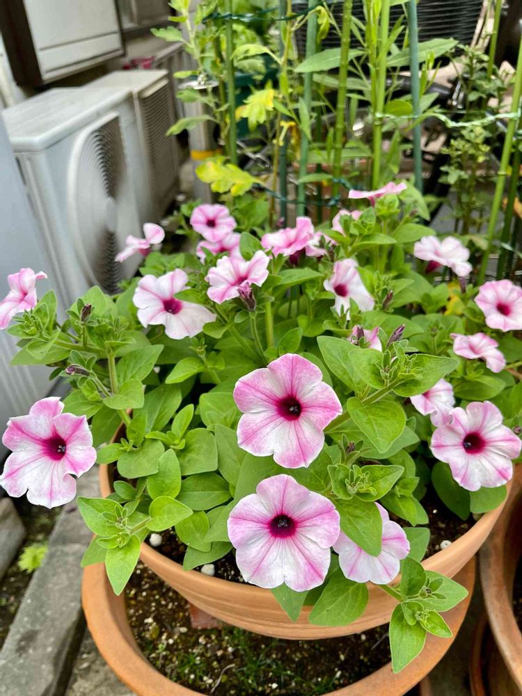 今年一推しのペチュニア、タキイさんの『ラブリーアイ』❤️もの凄い成長スピード❣️少なくとも他のペチュニアの2倍は成長早くてとても丈夫です❣️挿し芽🌱したら凄いかも。梅雨☔️はどうなのかな🤔