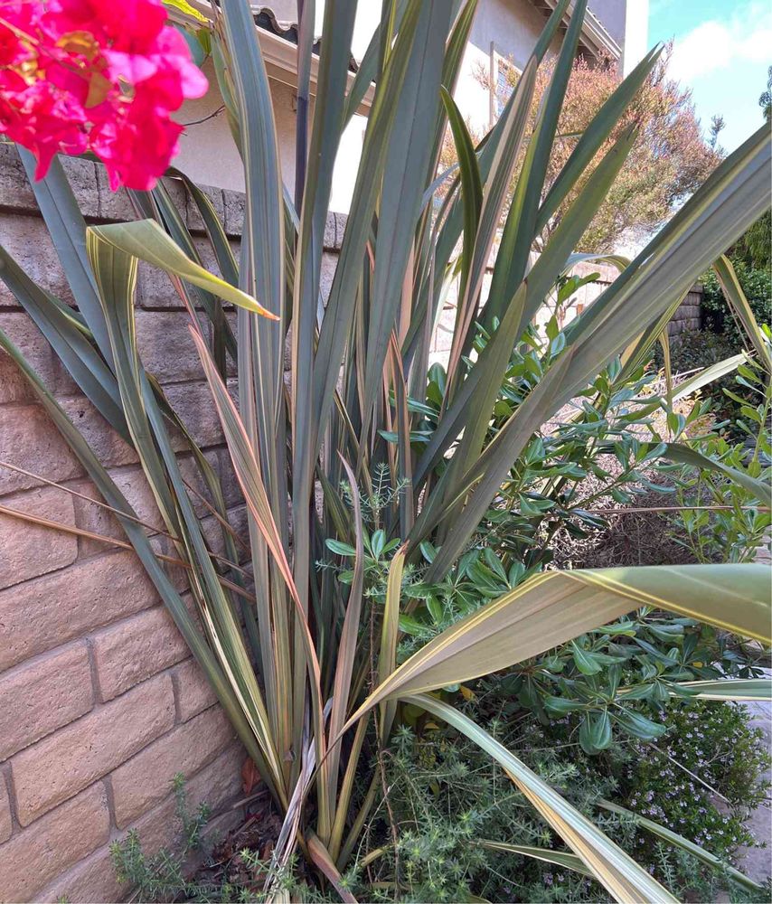 昨日のpicに少し映り込んでましたが、大人の背丈以上にも育ったフォルミウム。この子もファーストオーナーさんの置き土産ですが何気に斑入りでカラーがつくのが大きさに反比例して可愛いです💓