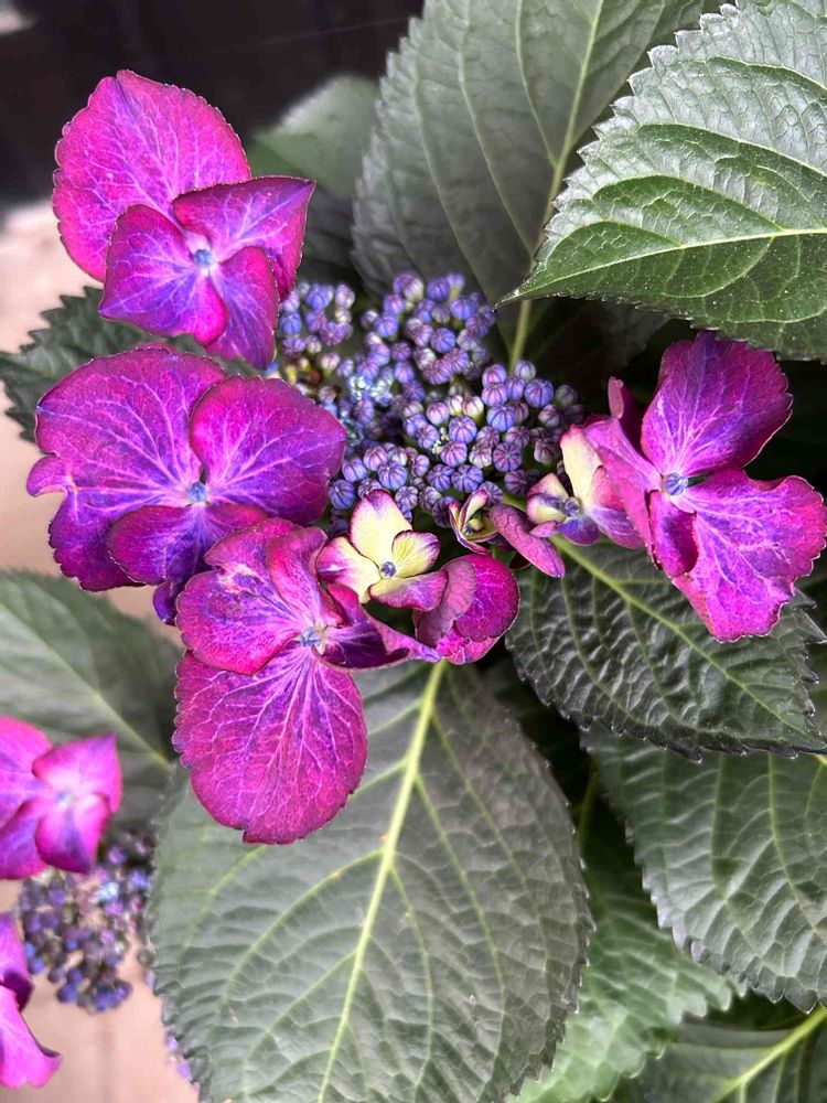 額アジサイって、こういうふうに咲いてくるんだなぁ😊