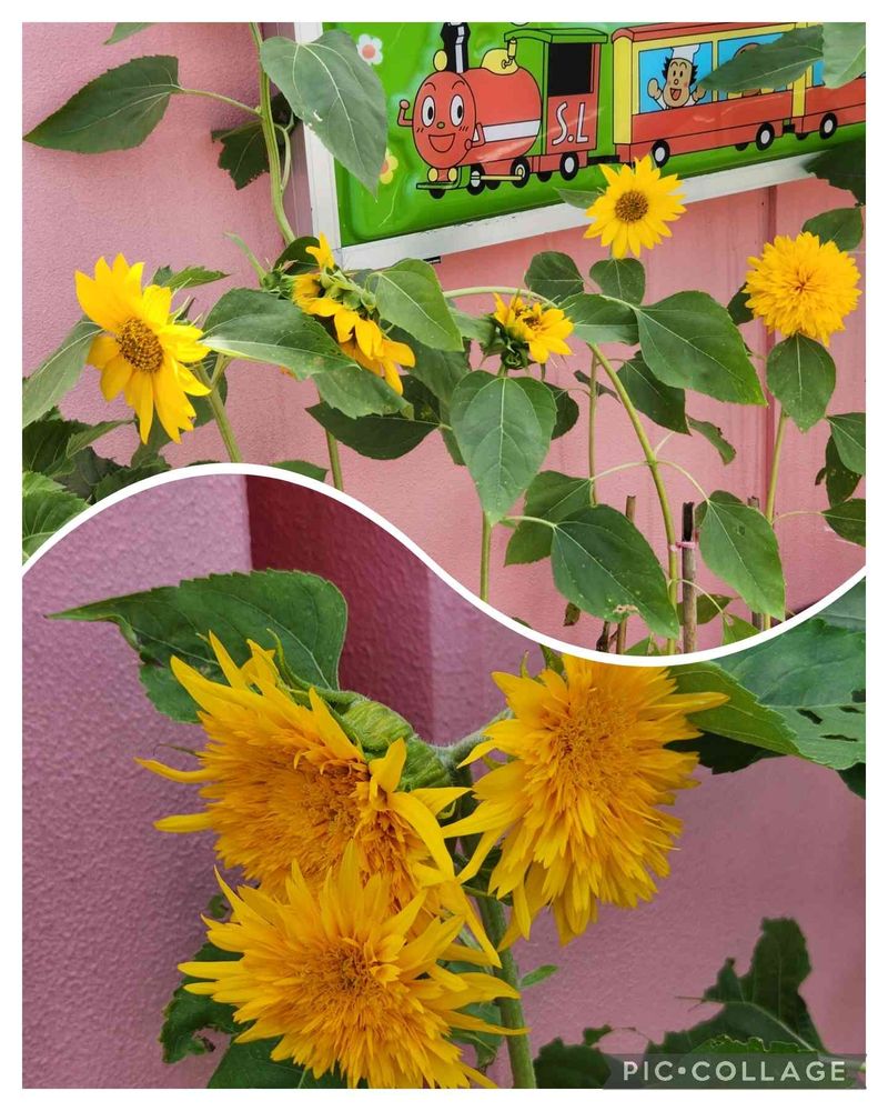 昨日、ノウゼンカズラのお宅の道路向かいの保育園玄関に、プランターに植えられたヒマワリ🌻が綺麗でした✨️💖