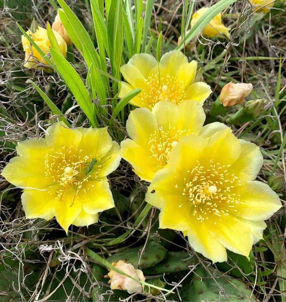 うちわサボテン🌵の花🌼にお客様🦗‼️