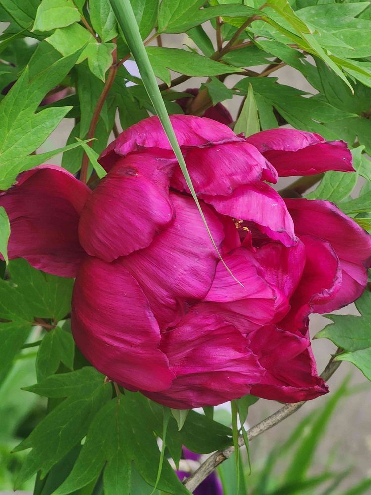 先日今日のお花がシャクヤクの日があり、遠目に「シャクヤクでは⁉️」と思って、朝5分早く出て、サイクリングロードの崖に登り💦撮影。