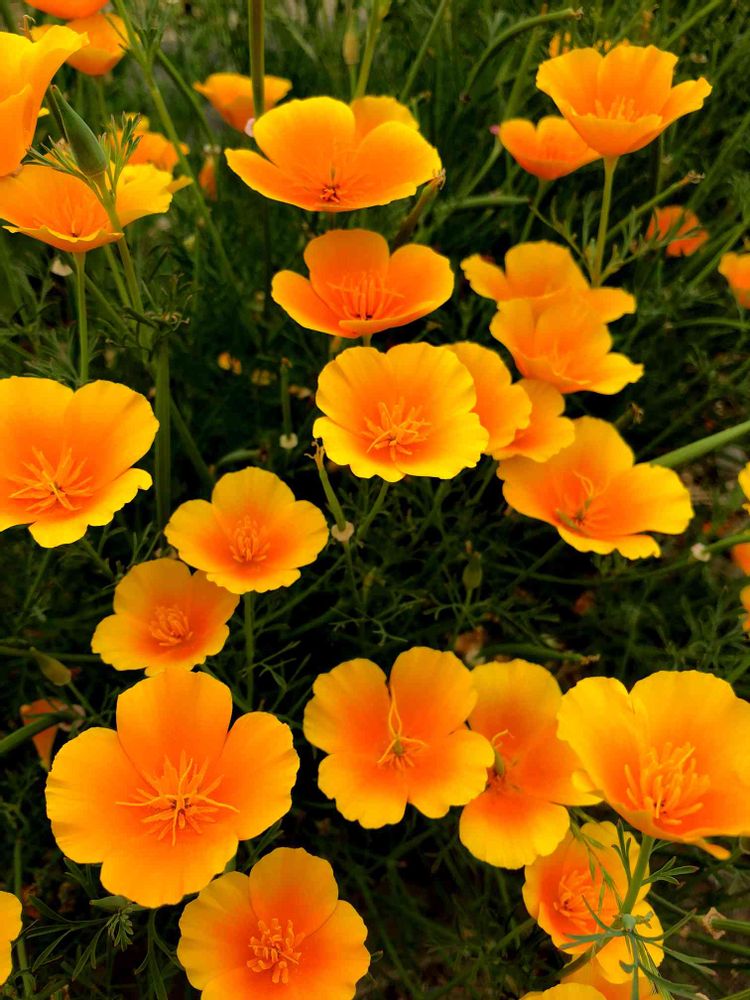 オレンジと黄色が、目に飛び込んできました🎶花菱草(ハナビシソウ)別名カルフォルニアポピーです。寒さと虫に強く手のかからない花。タネが見え隠れする程度の土で、一週間で芽が出るそうです。一年草でカリフォルニア州の州花です。この花、家紋の花菱に似ている事からこの名が付きました。黄色、オレンジ、朱色、ピンク、八重咲きもあるそうです。