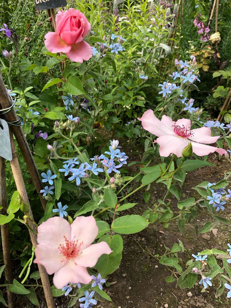 種まきから2年目の苗は元気いっぱい。たくさん育ったので、今年はあちこちで咲いています。花束に入っているイメージ通り、いろんな花と相性がいいですよね。