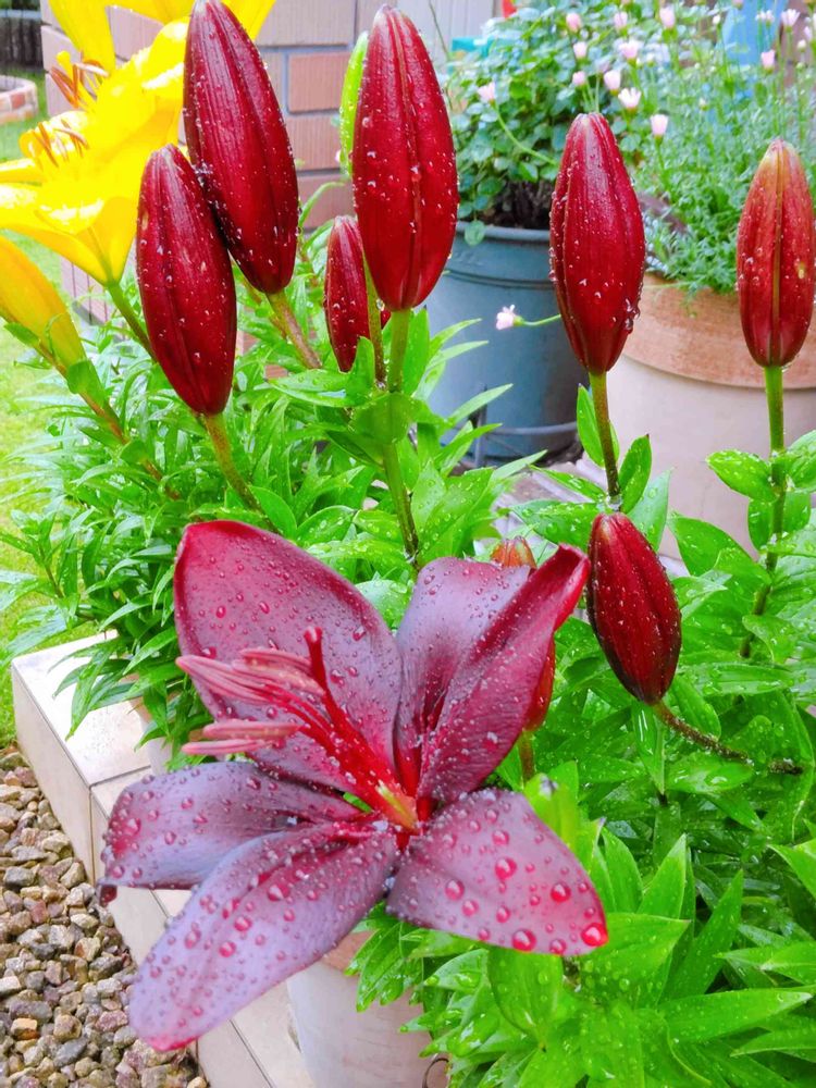 ☔上がりの朝🌅、チョコレート色の🍀すかし百合🍀が、咲き始めました🤗