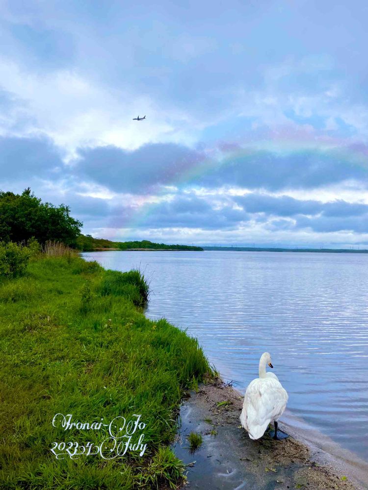 湖と白鳥🦢と✈️絵になりますよね〜🌈✨💗