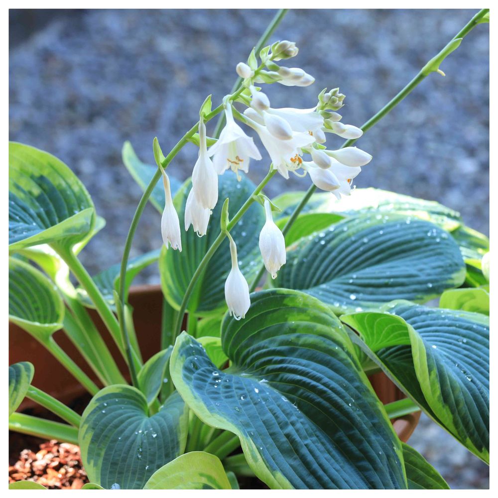 美しいブルー葉が魅力の大型のホスタに白い花が咲きました( ⁎ᵕᴗᵕ⁎ )❤︎