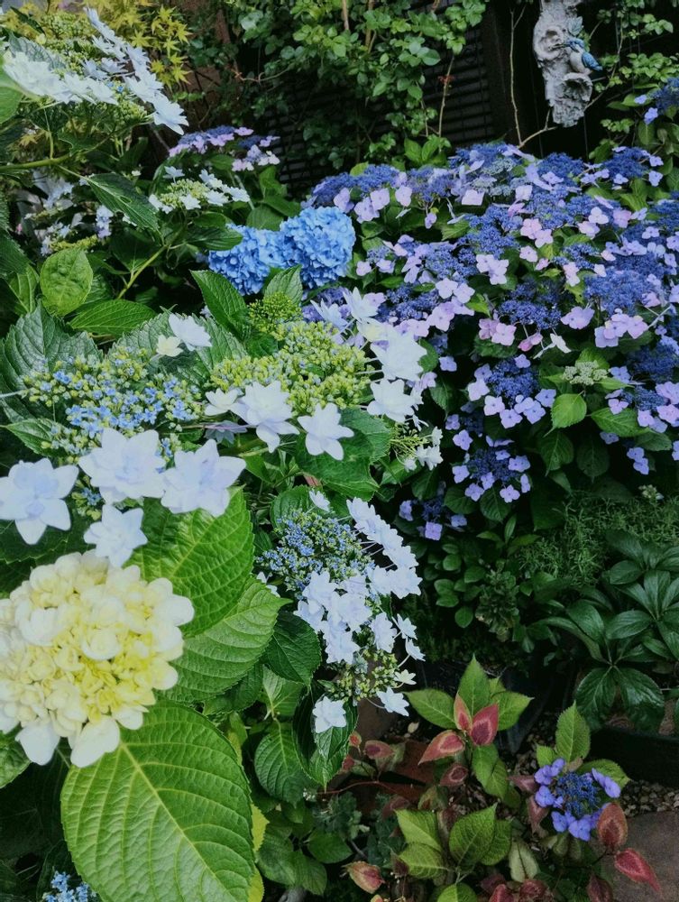 こんにちわ😊 何種類も紫陽花を近くに植えるのって素敵ですね💕 うちはポツンポツンと植えてるので。 色が引き立てあっていい感じです🙆♀️‼️