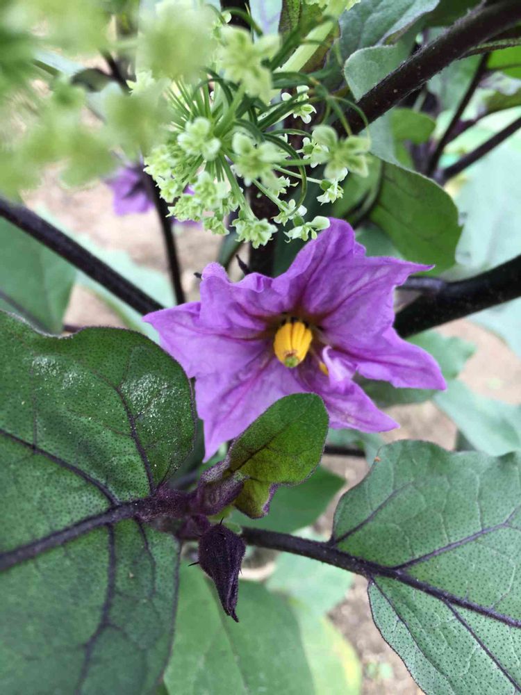 ナスの花!(上のはレースフラワーではなく、ニンジン)