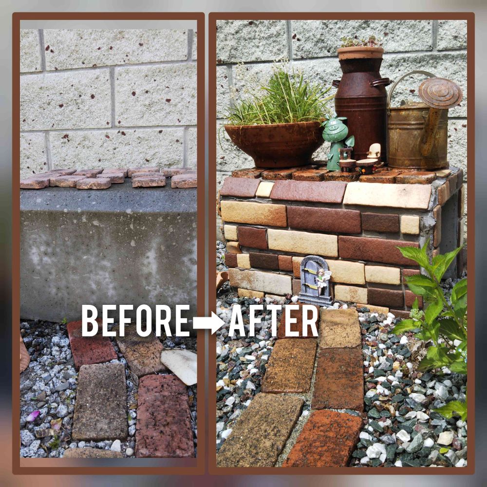 上に貼ったレンガは 随分前に 使わなくなった連結レンガを全部切り離して貼ってみただよ🔨