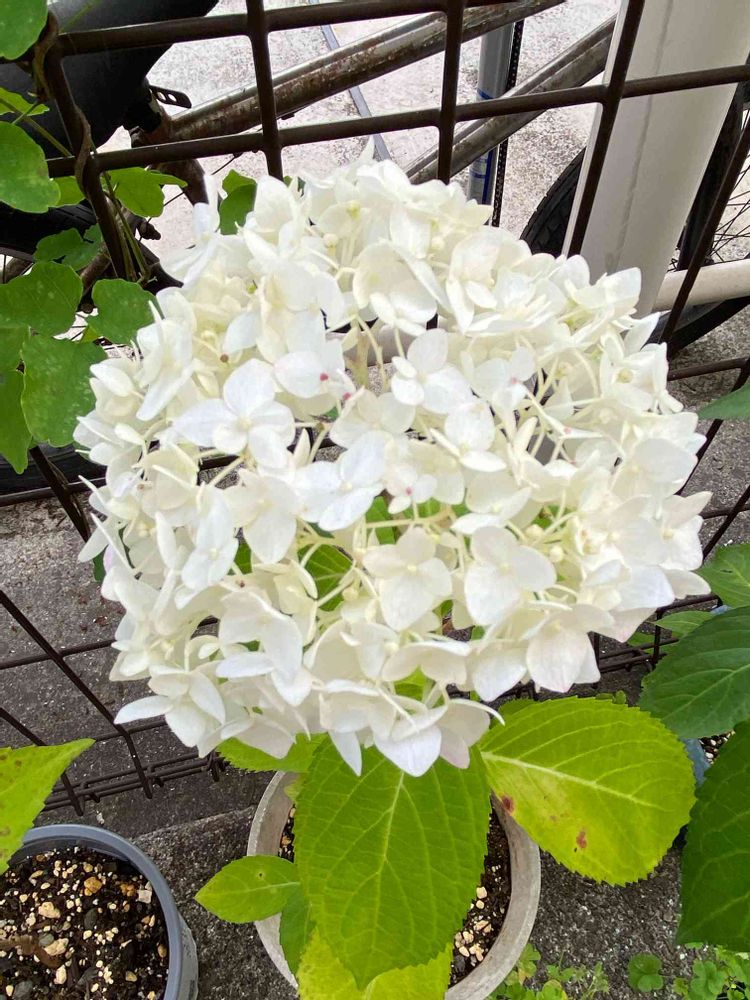 昨年から挿し木した枝に真っ白な紫陽花が咲きました😄