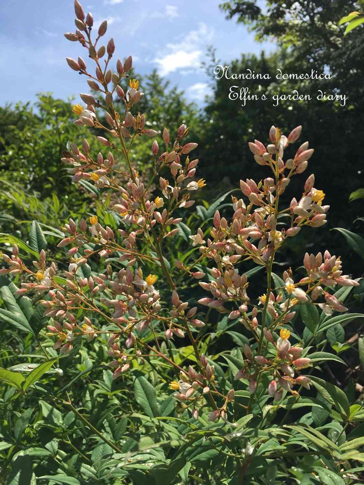 庭の前の崖のこぼれ種ナンテンにも花が咲き始めました。ナンテンの花、可愛い~~*ˊᵕˋ*