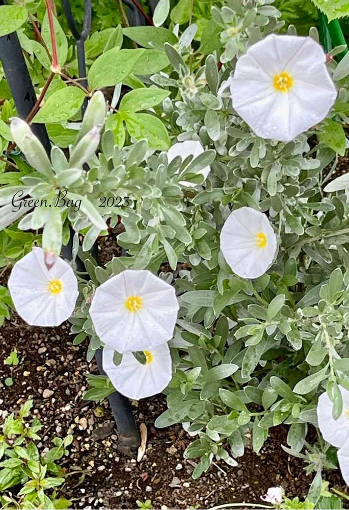 アーチのバラの足元をこの子(コンボルブルス クネオイム)が守ってくれて居ます😀