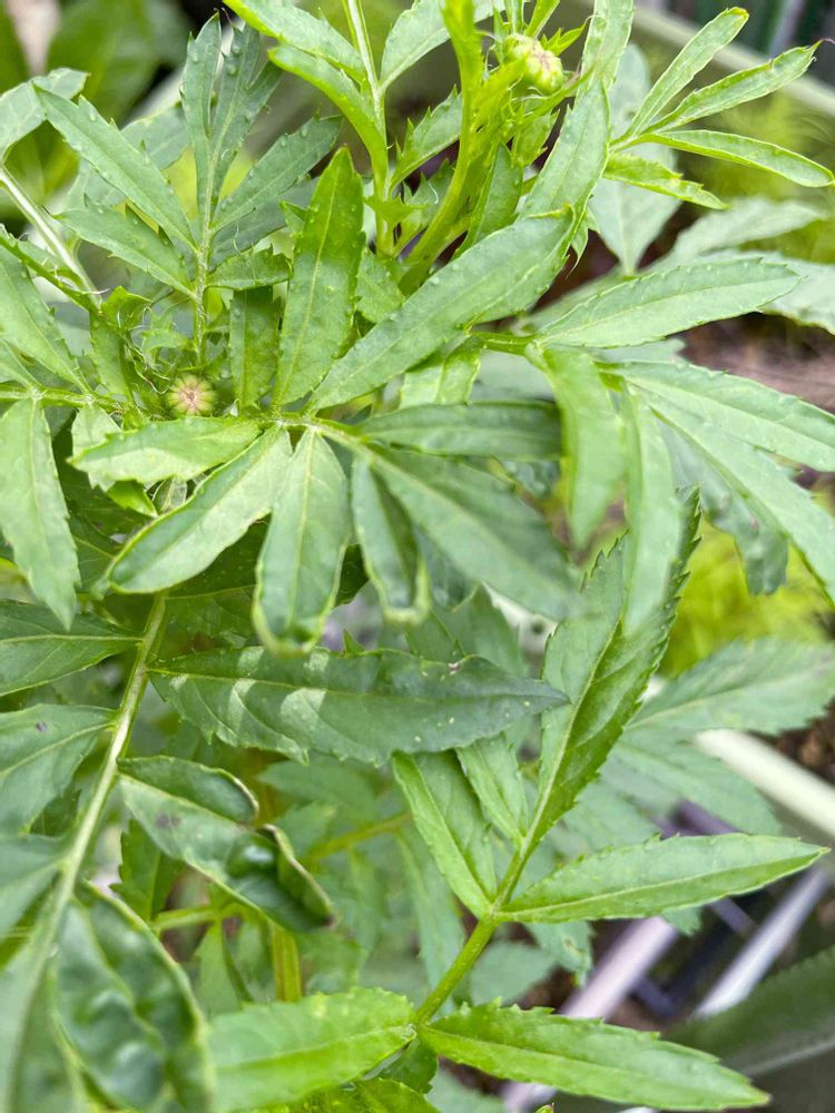 2023-6ー8(木)薄曇り マリーゴールドの溢れ種子から育ってツボミが見えて来ました🤭