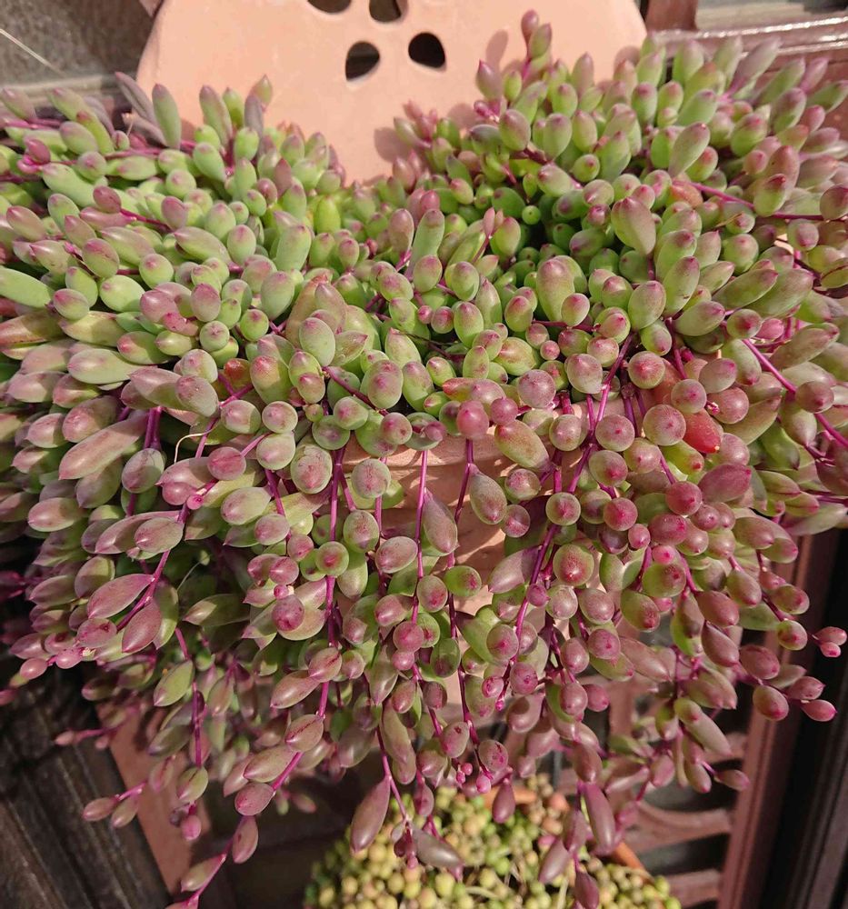 グリーンネックレスは強い。長年育ててますが、伸びたところ切って、土を植え替えてを繰り返しもう長いことうちにいます。