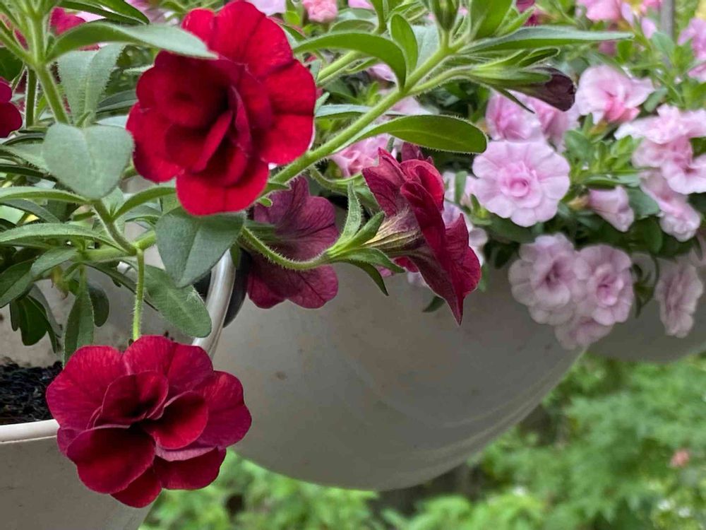 小さな庭,八重咲きカリブラコア,赤い花の投稿画像