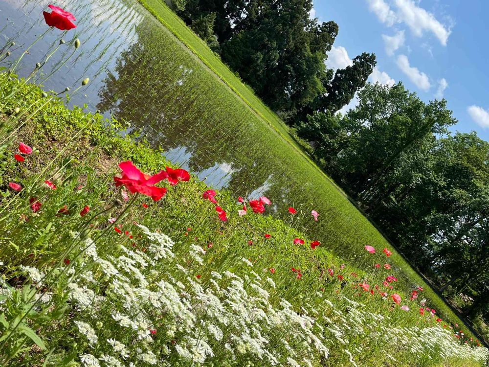 水田には青空と木々がくっきり映り込み…✨キラキラ❁︎