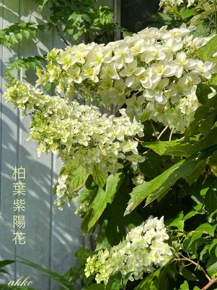 我が家の花畑の奥で、柏葉紫陽花がさいてきました