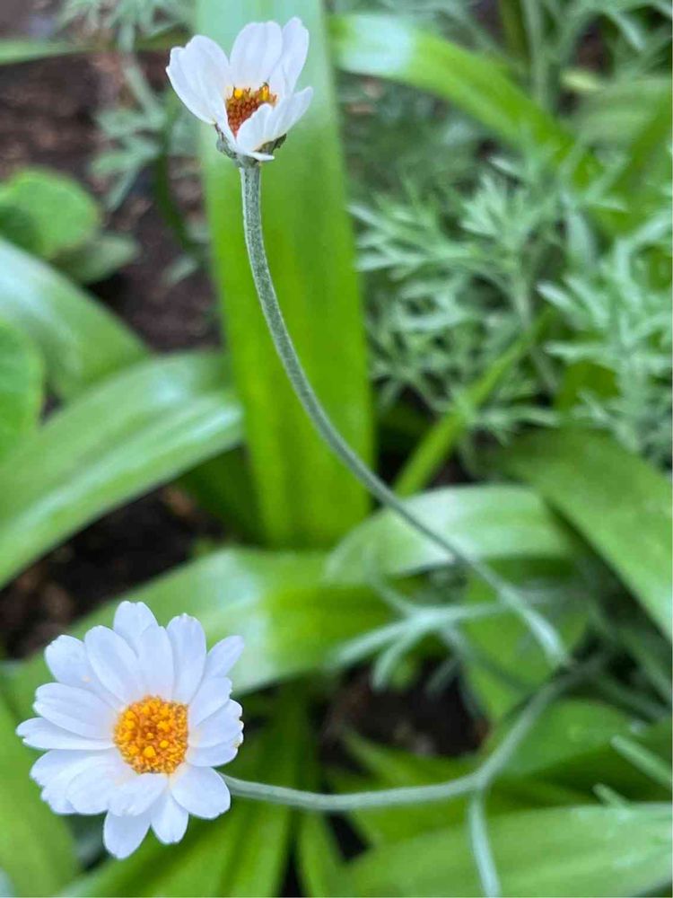 去年迎えたローダンセマムさんが雪の下で冬越しをして咲いてくれました 一年草で札幌では無理だと思っていたので感動です
