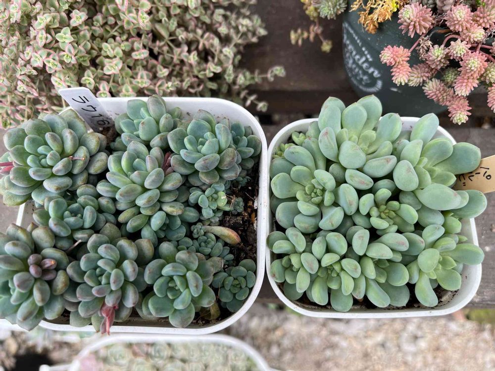 どちらもフリマアプリでポチって、小さい一苗から小さい葉っぱをもぎって2021年の12月から増やしました😆モリモリ増えて嬉しい🤩