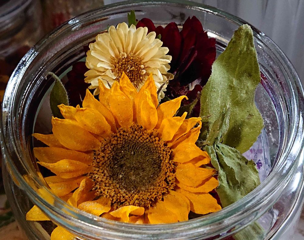 小さく咲いたひまわりはビン詰めに最適です😊✨😊