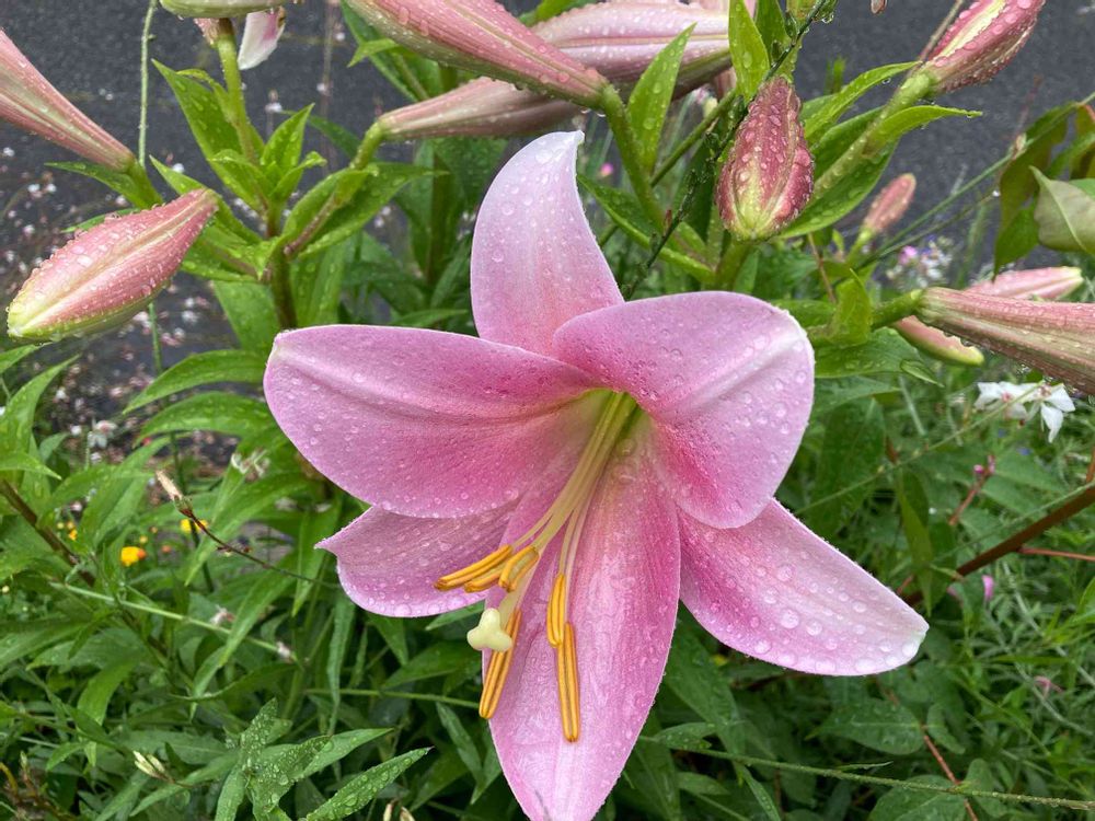 大雨の中、一つ咲いたユリ