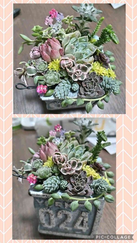 ミニ寄せ植えを作りました☺晩に会合があるので、みんなに見てもらい次回に一緒に作りたいと思ってます😉