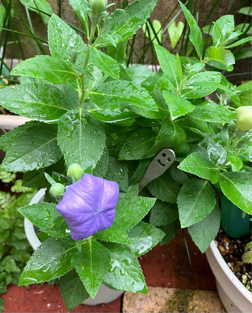 桔梗の花好きやわꔛ♡粋で凛とした花がカッコ可愛いよな♡•••て•••その横の金属ニッコリはんは•••(๑˃́ꇴ˂̀๑)!?笑